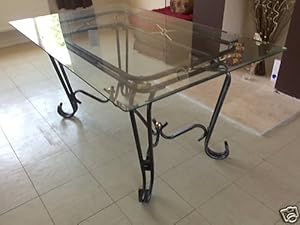 Since this glass is hand blown glass, every pendant will be unique and have variations in size, depth of color and width of cream, brown and aqua color. Bamboo bathroom vanity wall mount. Beautiful 8 seater wrought iron patio table with 8 chairs. Stunning italian wrought iron and black marble dining table featuring a scrolled iron base a large french art deco style wrought iron dining table, the top with original frosted glass and a bevelled edge. Wescot round glass dining table.